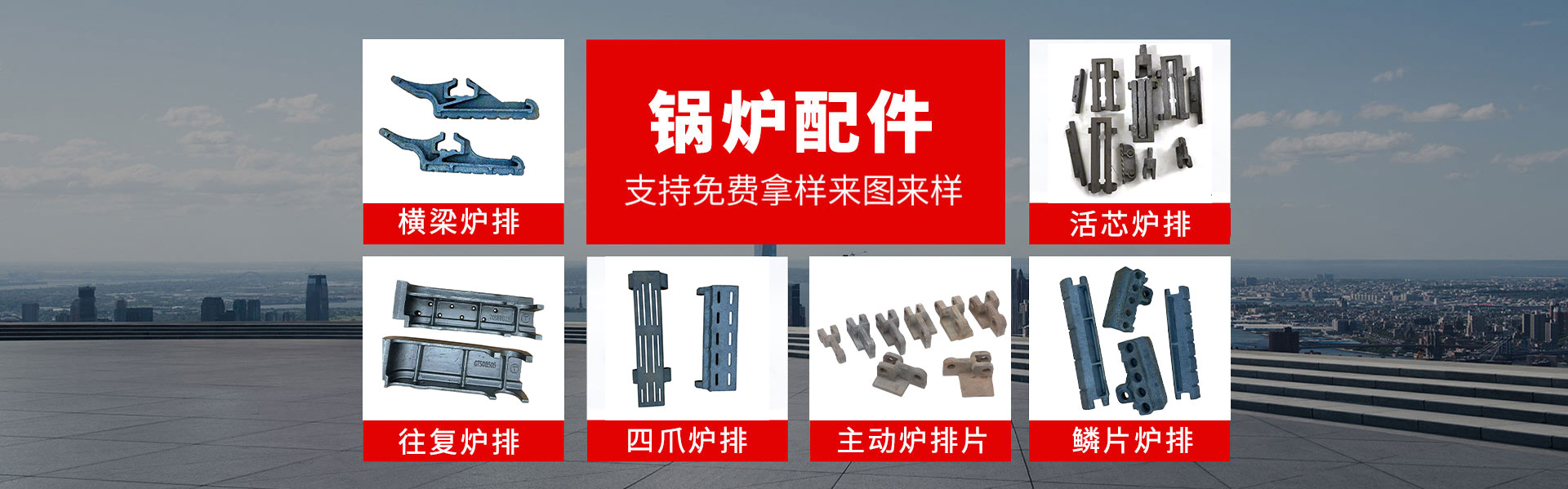 產品有橫梁爐排,活芯爐排,往復爐排,合金爐排,四爪爐排,鱗片爐排,省煤器管,鏈條,刮板,除渣機刮板等產品